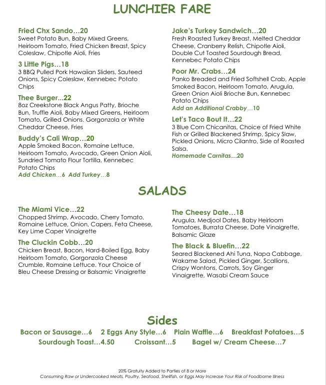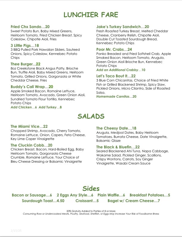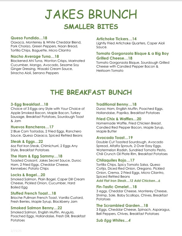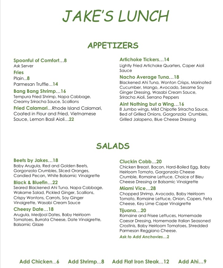 6 oz. petite filet topped with red wine demi glaze and lemon beurre blanc served with a half Jake’s wedge salad.